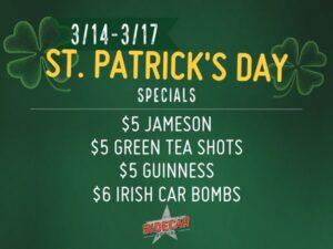Celebrate St. Patricks Day from March 14th through March 17th with can’t beat drink specials at Sidecar Social!